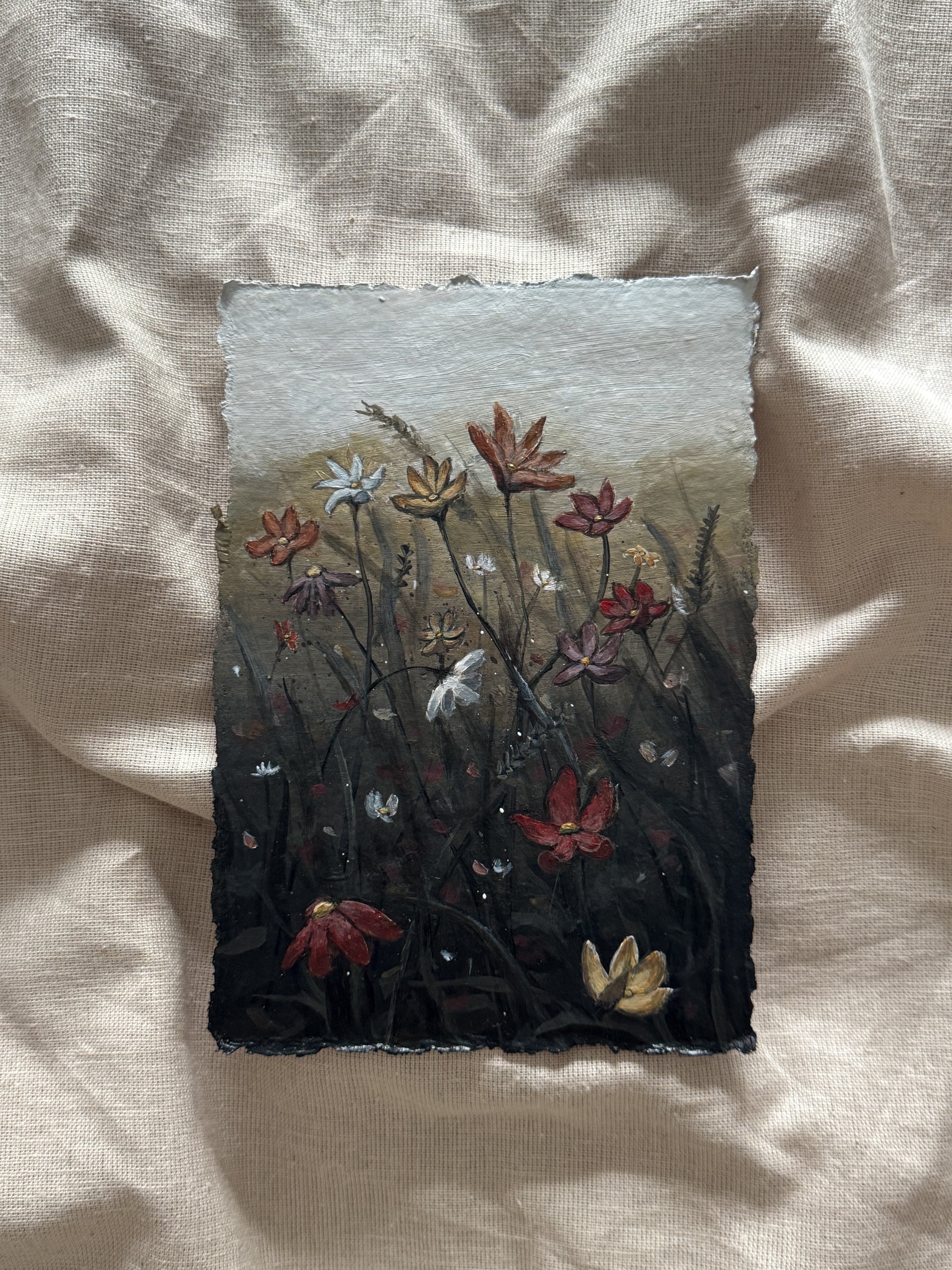 An original acrylic painting on 100% cotton rag paper with a deckle edge finish.