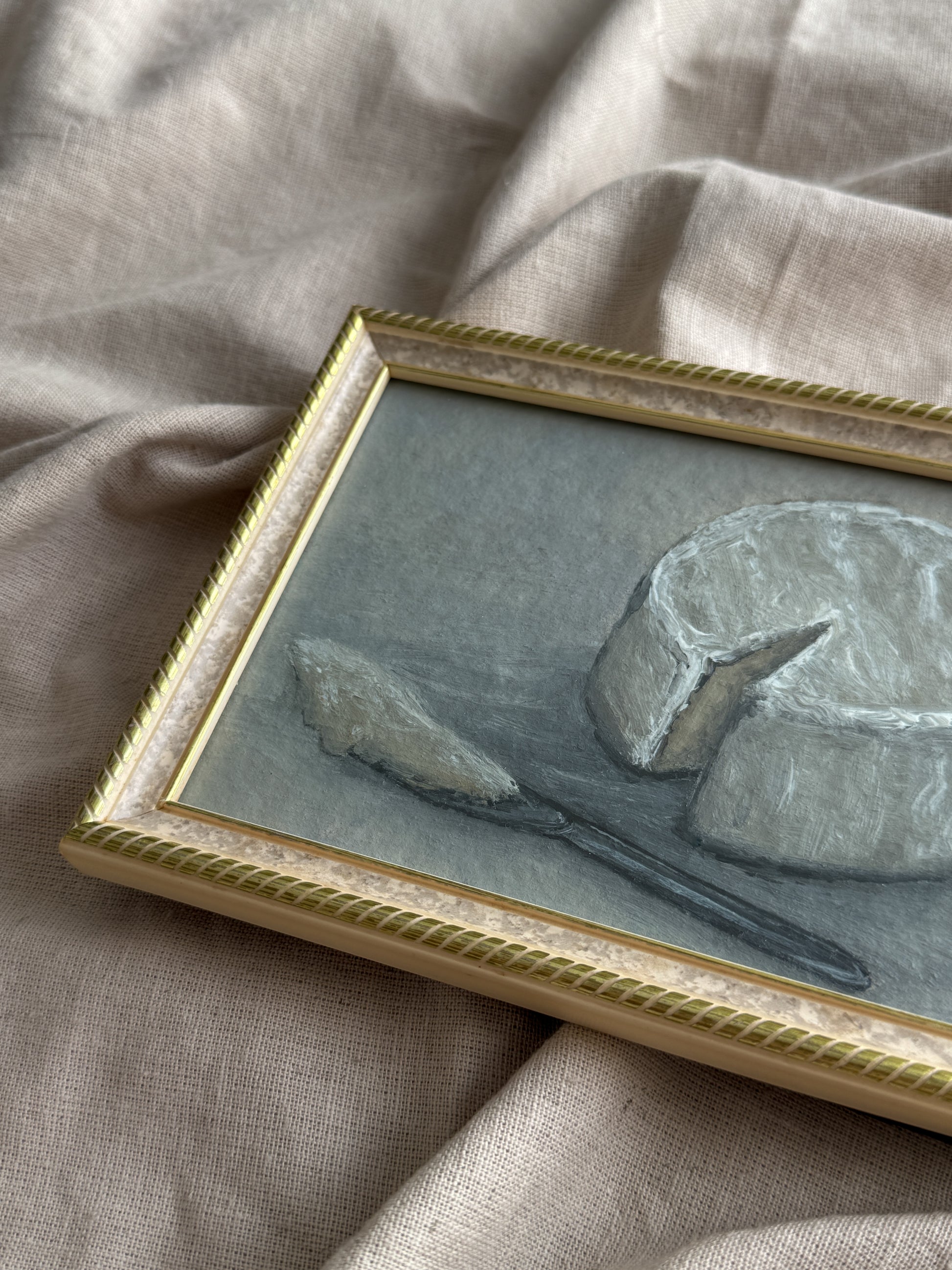 An original acrylic painting on 100% cotton rag paper, styled in a charming thrifted frame. Please note that due to the nature of the frame, it may display signs of aging and wear, adding to its unique character.