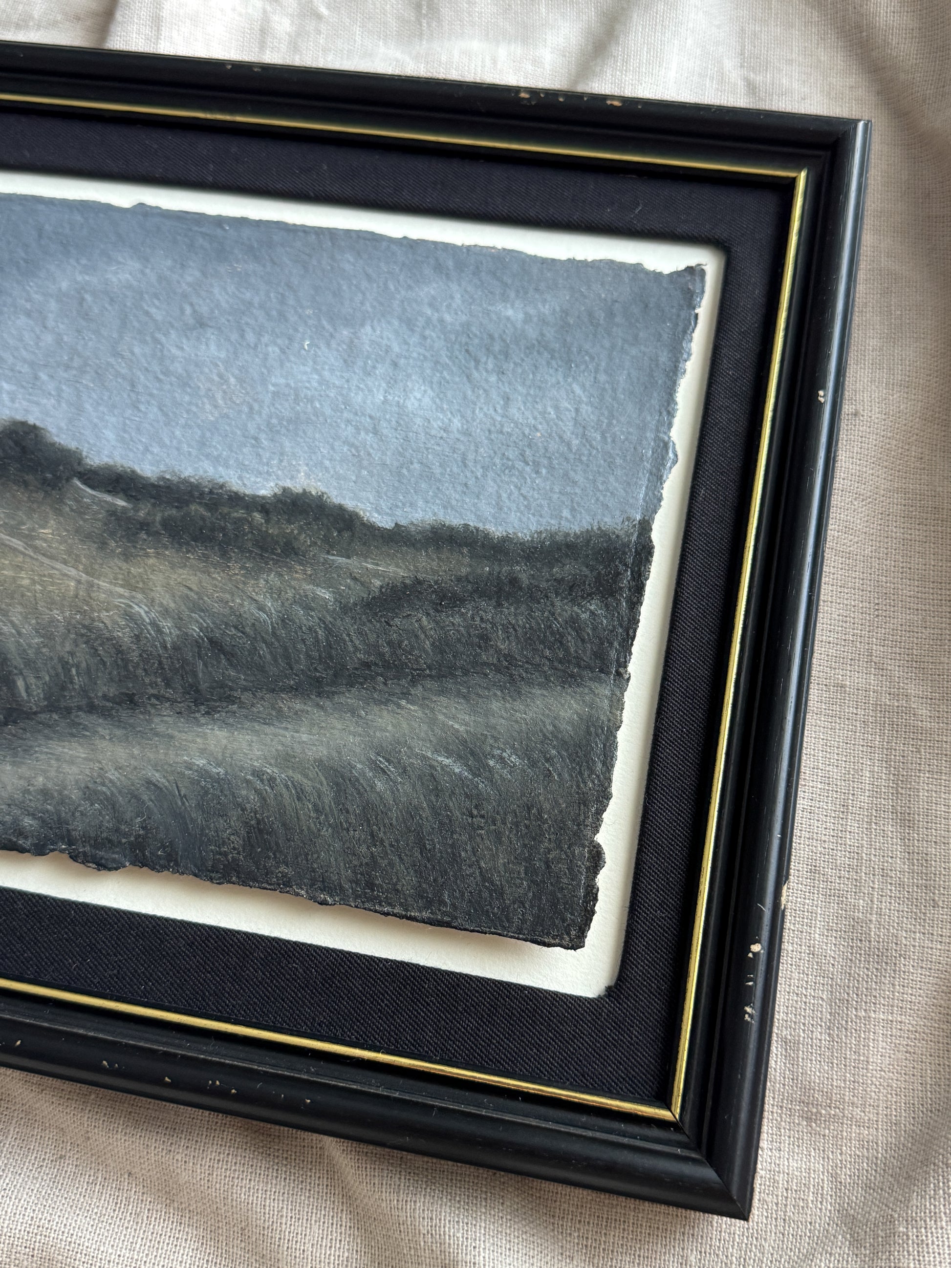 An original acrylic painting on 100% cotton rag paper, styled in a charming thrifted frame. Please note that due to the nature of the frame, it may display signs of aging and wear, adding to its unique character.